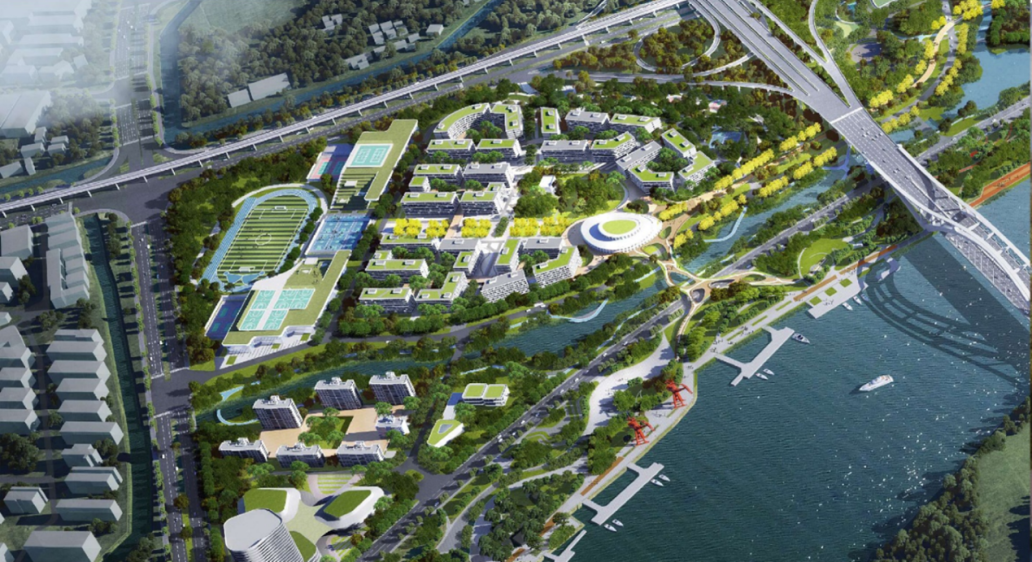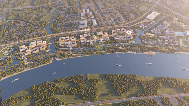 依江而建的校园,在中轴对称的基础上做到了新的突破,以甬江为纽带自然构建城市新的滨江区,以曲线链接天然与未来相融合的校园,借此提升学生体验,强化学生、校园与当地母亲河甬江之间的联系。