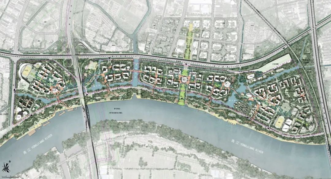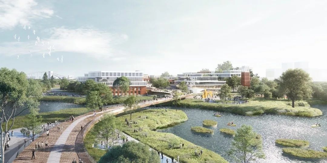 依江而建的校园,在中轴对称的基础上做到了新的突破,以甬江为纽带自然构建城市新的滨江区,以曲线链接天然与未来相融合的校园,借此提升学生体验,强化学生、校园与当地母亲河甬江之间的联系。