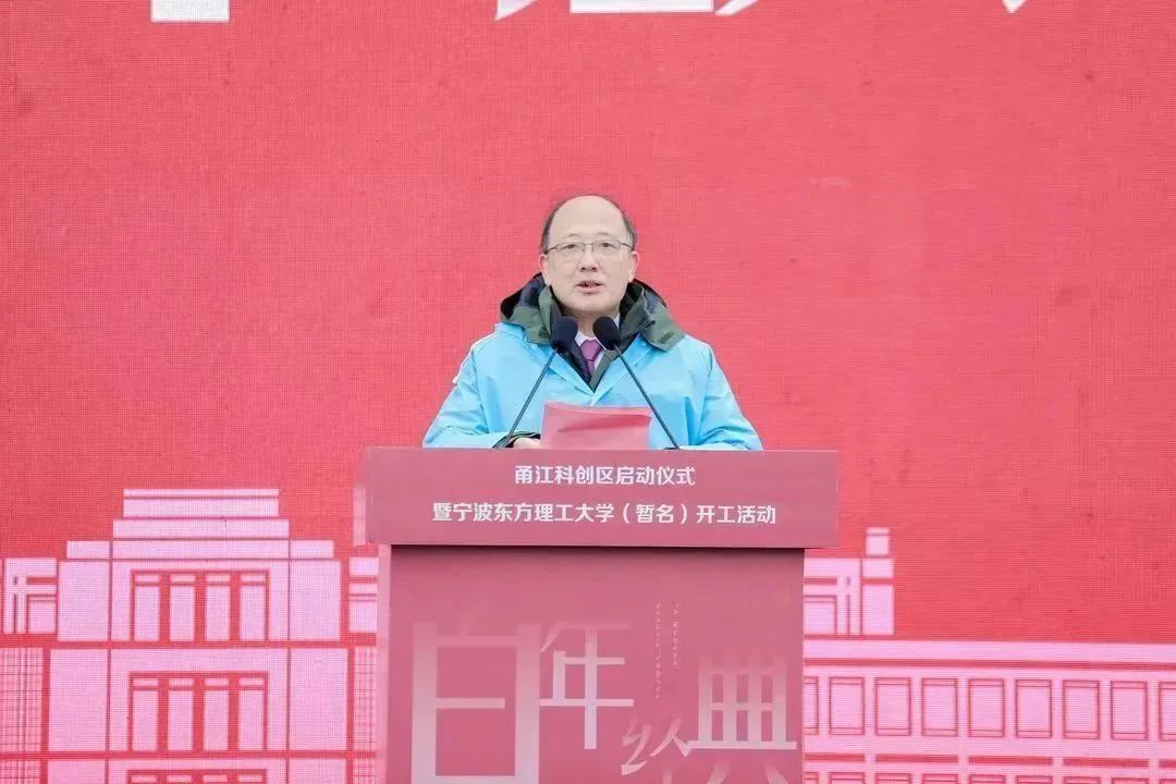 从今天起,甬江科创区将进入由“谋”到“干”的新阶段。要立足国家教育、科技、人才工作总体布局,对标世界一流、锚定科技前沿,集成全市之力、汇聚八方之智,加快推进“一区四港多组团”建设,聚力打造具有全球影响力的科创主平台、人才新高地、都市未来城,成为中国式现代化市域样板的重大标识。今天,宁波东方理工大学校园正式开工,将为甬江科创区建设、为宁波高等教育跨越式发展架起又一根“顶梁柱”。希望东方理工大学锚定高水平、创新型、国际化新型研究型大学的定位,一体推进软硬件建设,创新教学科研机制,完善人才培养体系,加强国际协同创新,加快建设顶尖工科、卓越信息、一流理科和精品商科,努力成为现代化滨海大都市的“金名片”。