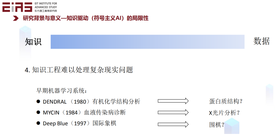 既然数据驱动存在问题,那么可否像早期的人工智能一样基于知识建模呢?然而对很多复杂的问题,很难完全基于知识来构建模型。这也是现在基于数据驱动的人工智能模型被广泛推广的一个原因。