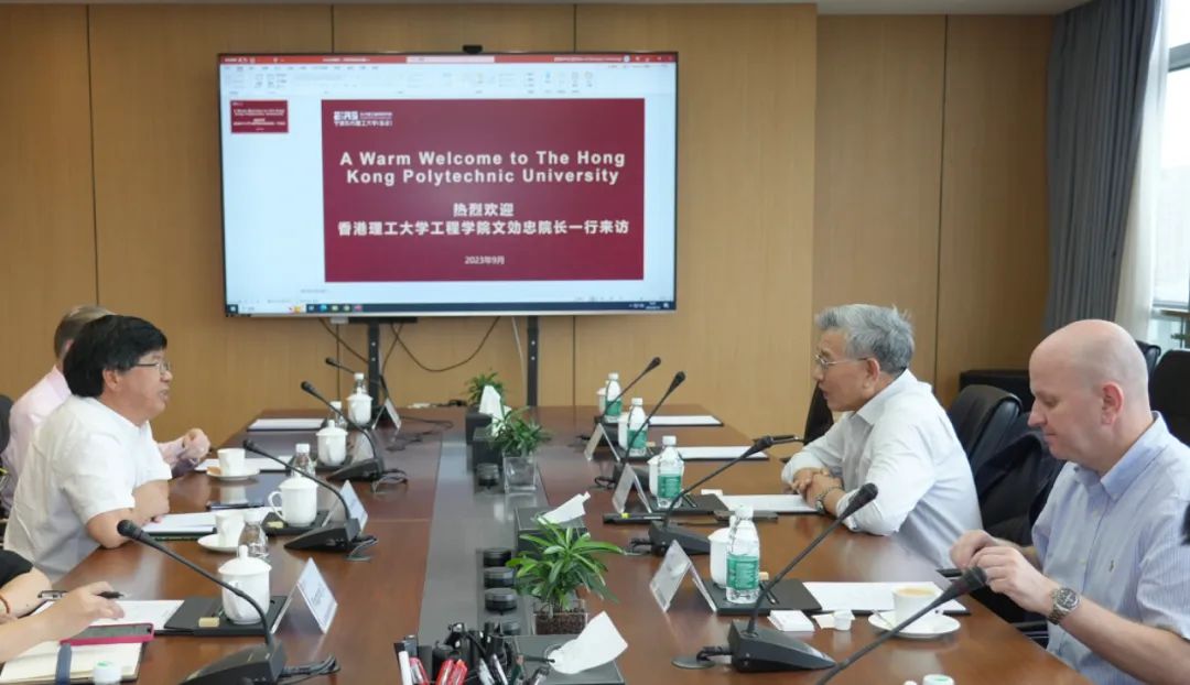 9月14日,香港理工大学工学院院长文効忠一行来我校交流访问,我校副校长兼工学部筹建负责人郑春苗出席接待,并与对方就持续深化两校交流与合作、推进科技创新、人才培养和共建先进制造研究院等方面深入探讨。香港理工大学航空服务研究中心总裁Robert Voyle,航空服务研究中心工程师辛颖,宁波市产业研究院院长许益鋒随同来访。我校信息学部讲席教授David Keezer,行政办公室、对外合作部等相关单位参加此次活动。