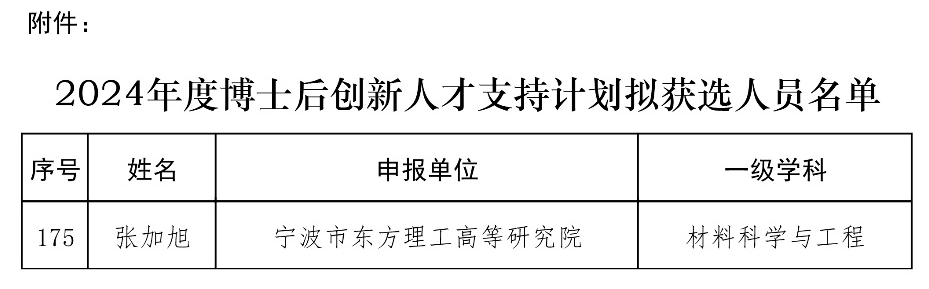 近日,全国博士后管委会办公室中国博士后科学基金会公布了2024年度博士后创新人才支持计划(简称“博新计划”)拟获资助名单,我校博士后张加旭成功入选。