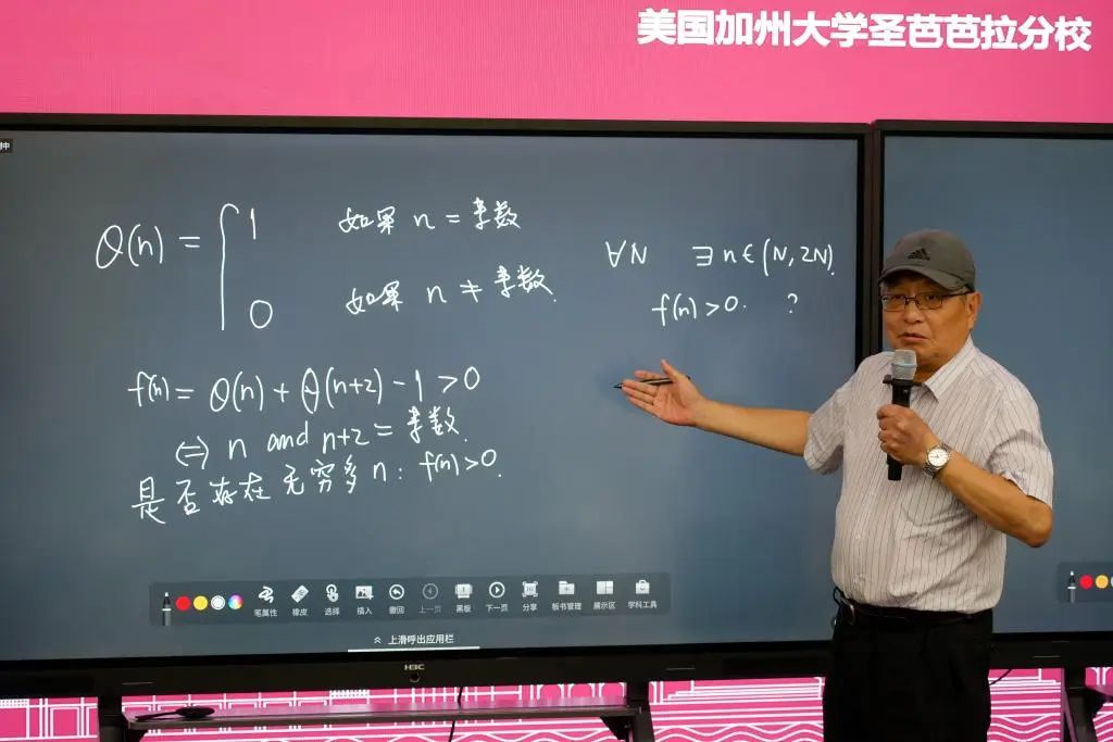 整场讲座,没有PPT,两块黑板,一支笔,这是张益唐报告所用到的全部工具。他拿起笔,在黑板上写下一行行公式,缓缓地向大家简述了什么是孪生素数猜想。几百人的报告厅鸦雀无声,张益唐用最质朴的方式演绎了何为数学的简单之美。