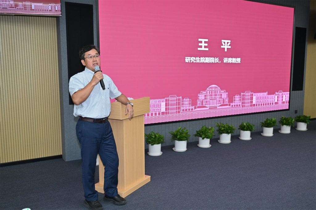 研究生院副院长王平介绍了东方理工研究生教育情况,勉励同学们在未来的学习生活中积极主动投身科研,做好时间规划,勇于探索。