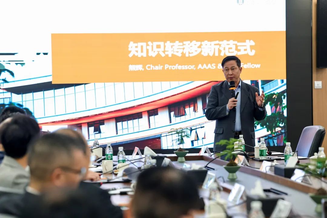 熊辉介绍了香港科技大学(广州)在促进科技创新、知识产权管理和创业孵化方面的做法与经验,以及如何通过政策支持和实践活动推动学术研究成果的商业化和社会应用。