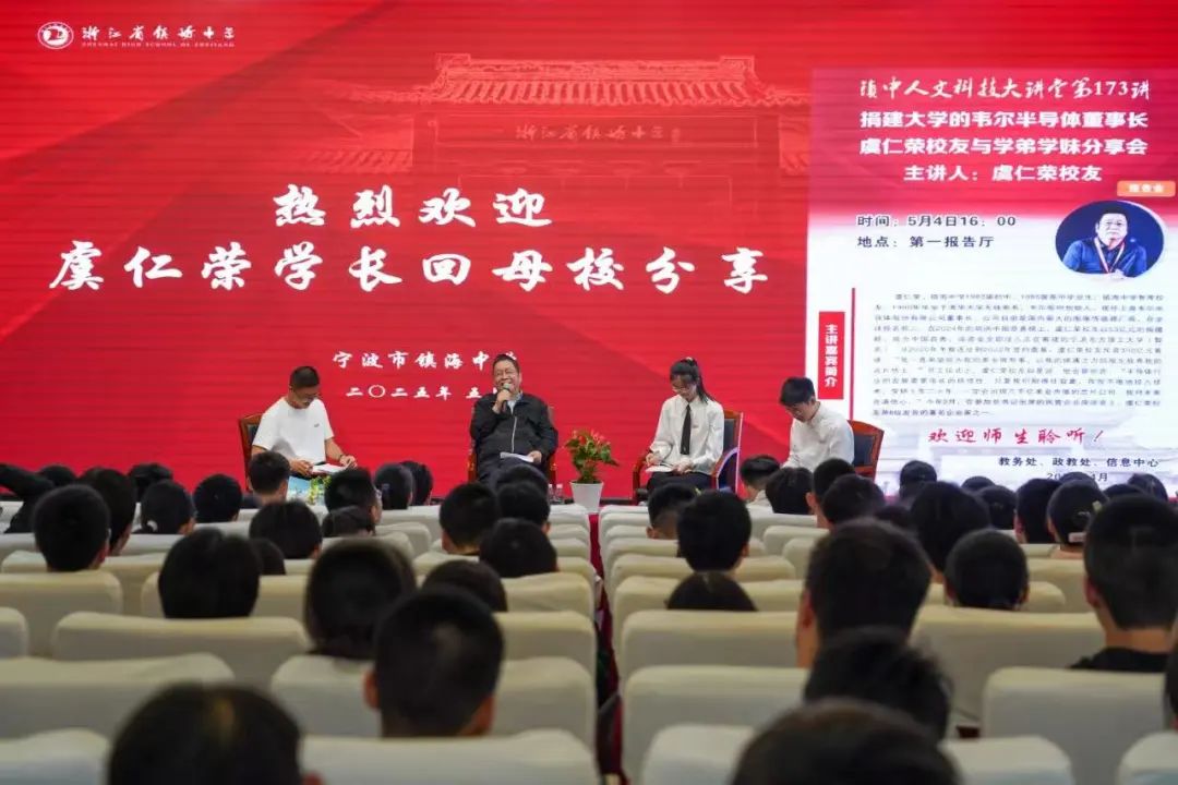 5月4日,上海韦尔半导体股份有限公司董事长虞仁荣做客镇海中学的“镇中人文科技大讲堂”,为母校镇中学子带来一场精彩纷呈的 《捐建大学的韦尔半导体董事长虞仁荣校友与学弟学妹分享会》。