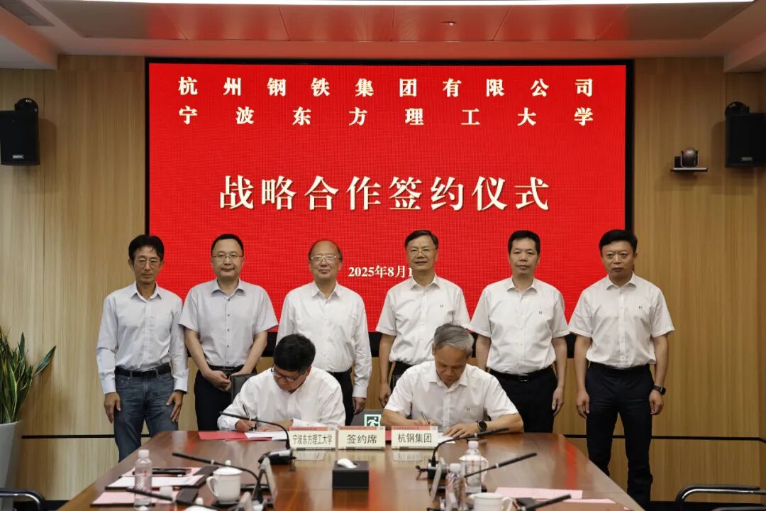 81日,宁波东方理工大学与杭州钢铁集团有限公司正式签署合作协议,双方将在人才培养、科研创新、成果转化等领域展开深度合作,共同探索产学研协同发展的新模式。校长、中国科学院院士陈十一与杭钢集团党委书记、董事长章建成出席仪式并讲话,副校长郑春苗与杭钢集团党委委员、总工程师胡文豪代表双方签约。