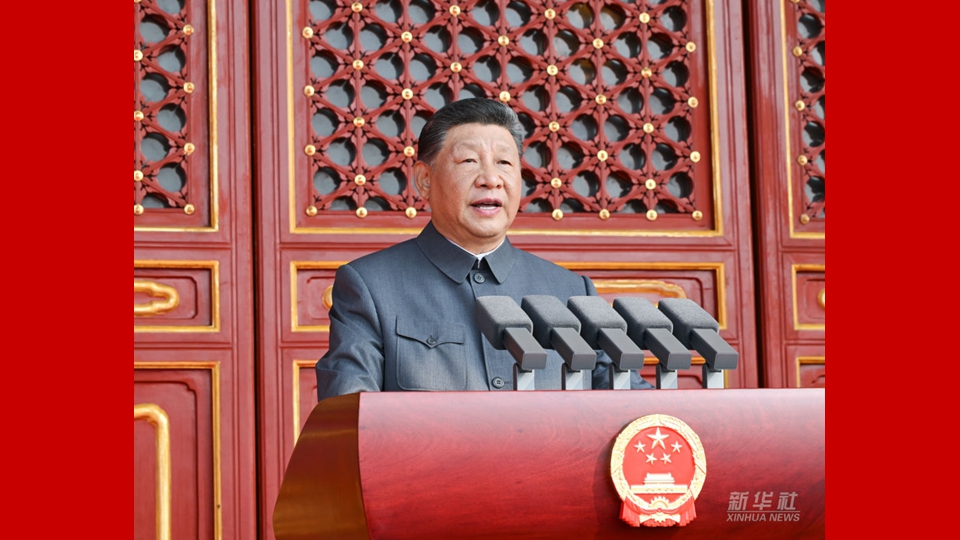 今天,我们隆重集会,纪念中国人民抗日战争暨世界反法西斯战争胜利80周年,共同铭记历史、缅怀先烈、珍爱和平、开创未来。