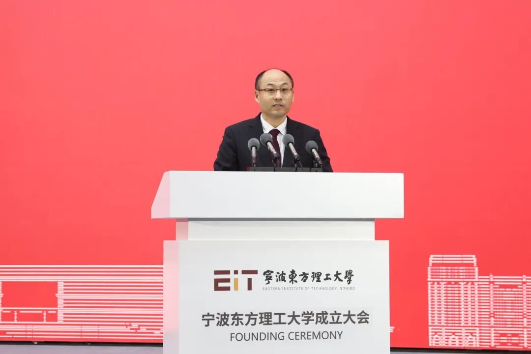 王成在讲话中表示,宁波东方理工大学的成立,是加快建设教育强省、科技强省、人才强省的生动实践,是浙江和宁波教育发展史上具有里程碑意义的大事。希望宁波东方理工大学锚定正确办学方向,坚持以习近平新时代中国特色社会主义思想为指导,强化党建引领,坚持立德树人,积极探索办学新模式,努力成为具有重大影响力的世界一流大学;主动服务发展大局,坚持“两新”深度融合,聚焦现代化产业体系建设,深化“高校+平台+企业+产业链”结对合作,推动创新成果加速转化为新质生产力。党委、政府将始终高度重视、大力支持学校建设发展,用心做好服务保障,构建一流创新生态,营造崇学重教的浓厚氛围。