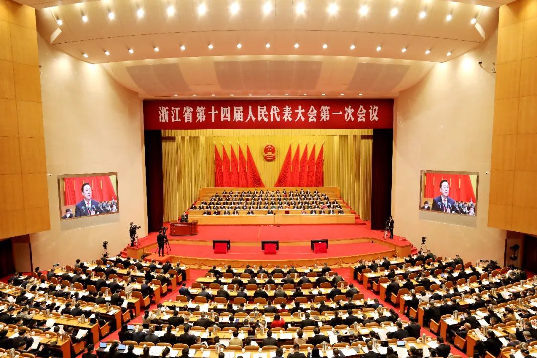 1月12日,浙江省十四届人大一次会议在省人民大会堂开幕。浙江新闻客户端记者 魏志阳 周旭辉 俞碧寅 摄