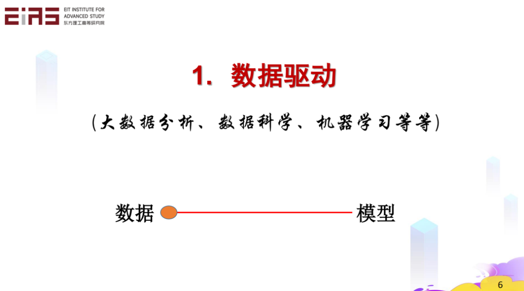首先来看一下数据驱动的一些例子,比如大家熟悉的大数据分析,数据科学机器学习等等。在数据和模型的天平中,这里是侧重于数据的,通过数据来寻找映射关系。