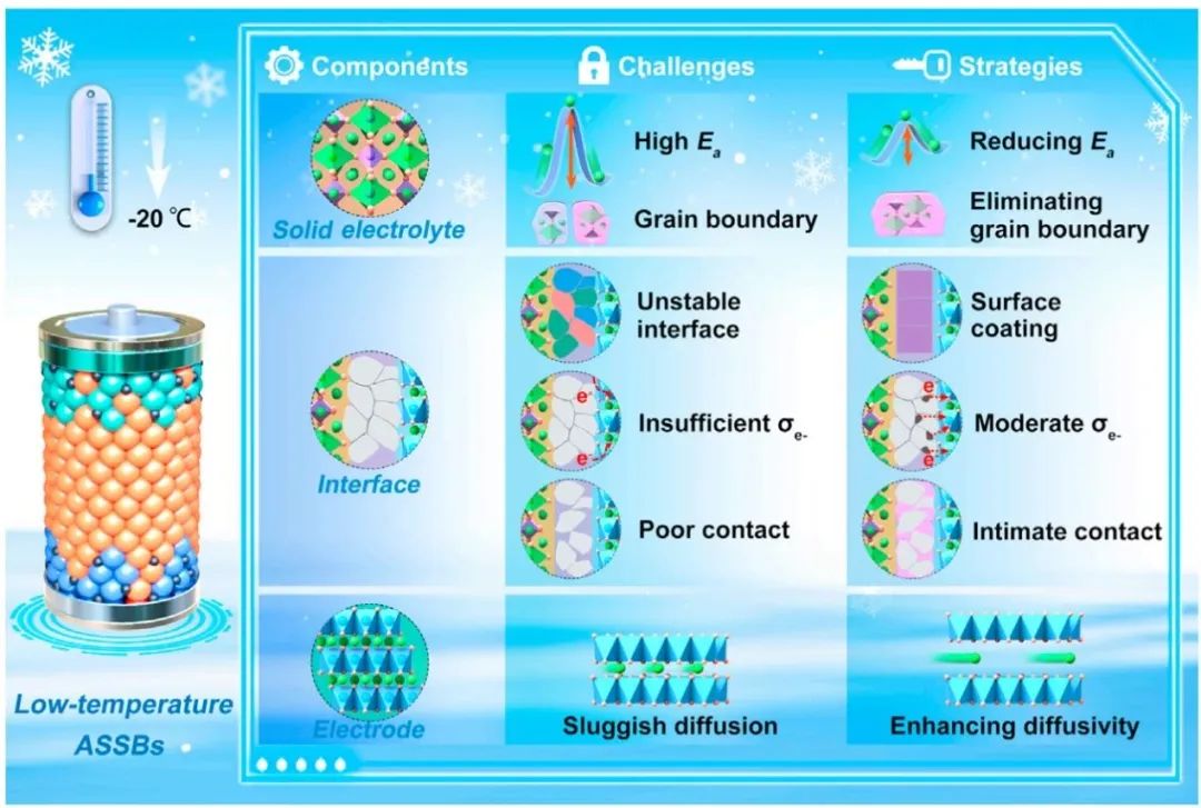 随着固态电解质材料以及正极/电解质固-固界面方面的显著进步,全固态电池(ASSBs)在温和温度(20~30℃)和高温(40~70℃)范围内已经展现出了卓越的电化学性能,例如快速充放电、高面容量和长周期循环稳定性。然而,当暴露在低温环境中,例如深海、外太空以及南北半球的高纬度地区时,ASSBs的电化学性能显著下降,限制了其在寒冷条件下的实际应用,且低温ASSBs性能下降的潜在机制尚不清楚。