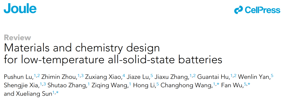 科研进展丨孙学良院士、王长虹团队发表《Joule》论文:低温全固态电池的材料与化学设计