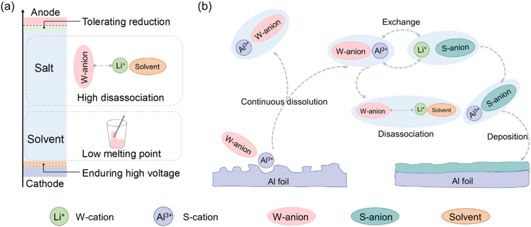 随着电动汽车、无人机和太空探索等领域的迅速发展,对于在极端低温环境下可靠运行的电池需求日益增长。低温条件下,传统电池性能下降,甚至失效,因此开发能够在极寒环境下高效运行的电池技术至关重要。这种研究不仅可以推动能源储存技术的发展,还可以拓展电池应用的范围,促进可持续能源的广泛应用,对于解决气候变化和提升能源安全都具有重要意义。然而,发展低温电池技术还面临较大挑战,低温电池通常需要高解离度的锂(Li)盐来增加电荷载流子,以便在苛刻的工作条件下获得有利的传输动力学。双(氟磺酰)亚胺锂(LiFSI)具有弱配位阴离子,可实现高解离常数,因此正被开发用于低温电解质,但是LiFSI会腐蚀铝(Al)箔,导致活性材料与铝集流器之间的电子通路断开,从而危及电池在高电压下的稳定性。