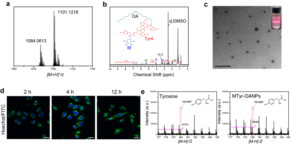 据此,在这项最新研究中,研究人员利用营养物质纳米化的新技术,将酪氨酸制备成靶向黑色素瘤的可降解两亲纳米胶束,利用其与细胞膜的亲和性及肿瘤细胞对纳米材料的包吞作用,克服了细胞对游离酪氨酸摄取的限制,显著提升胞内酪氨酸的含量(图2)。