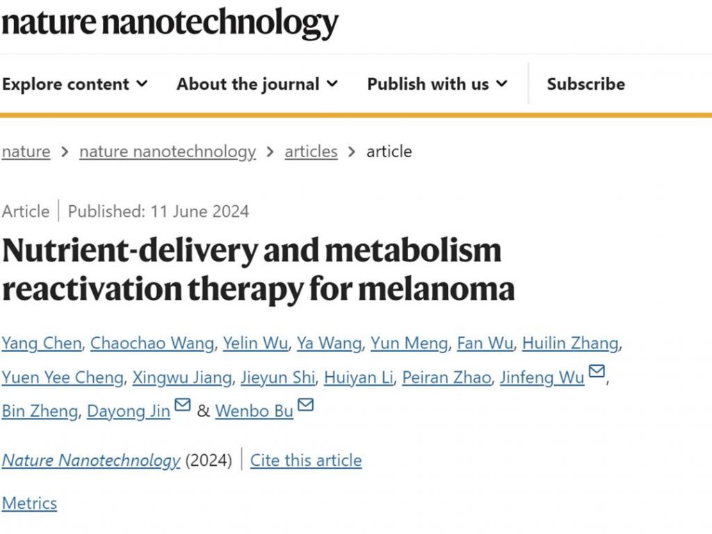天之道,损有余而补不足。近日,复旦大学步文博教授团队在学术期刊《自然-纳米技术》上,创新性提出基于纳米技术的肿瘤代谢重激活新疗法。并以黑色素瘤为例揭示:补充特定营养物质重新激活被抑制代谢,同样展现出令人振奋的抗癌效果,并有助于后续的联合治疗。