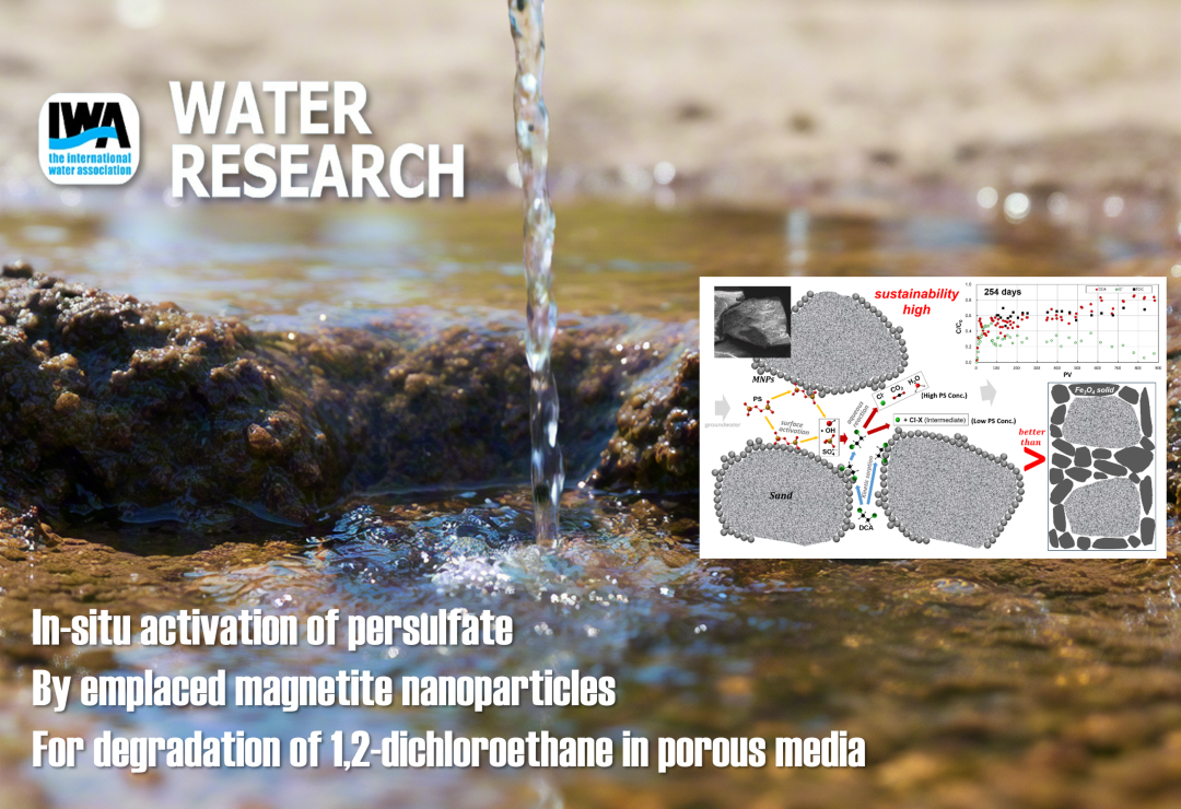 近日,我校钟华团队在水环境科学领域著名期刊《Water Research》发表题为“In-situ activation of persulfate by emplaced magnetite nanoparticles for degradation of 1,2-dichloroethane in porous media”的研究成果。团队开发了一种基于磁铁矿纳米颗粒(MNPs)的原位反应带激活过硫酸盐的方法,通过溶解性聚合物的强化迁移实现MNPs的原位布置并形成反应带,可有效且持续激活过硫酸盐,分解地下水中1,2-二氯乙烷等难降解性污染物。反应带连续工作9个月其性能不降低1,2-二氯乙烷的去除率稳定保持在50%左右,证实了其极强的持续性。研究还发现,与直接混合填充的四氧化三铁颗粒相比,MNPs因其微小粒径、高比表面积以及覆盖于介质颗粒表面的赋存状态,可更有效地激活过硫酸盐降解污染物。
