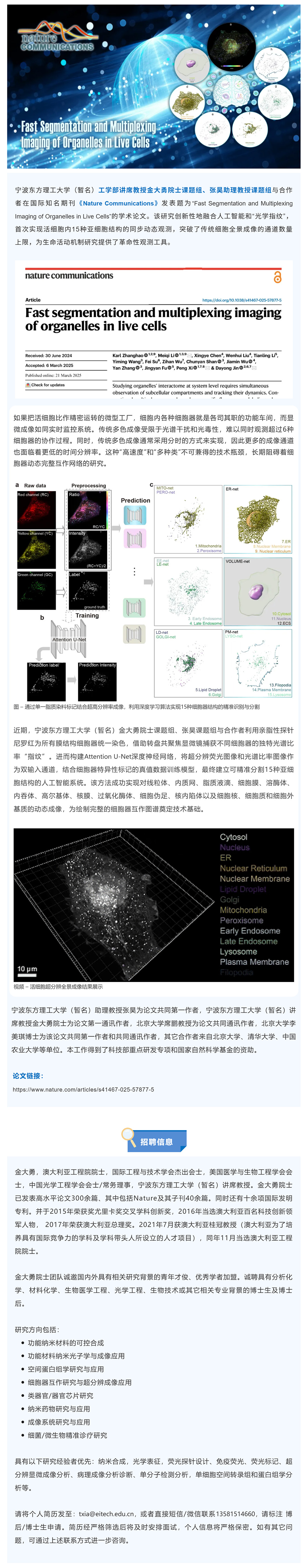 科研进展|金大勇院士团队与合作者用AI显微镜拍摄15种细胞结构“全家福”