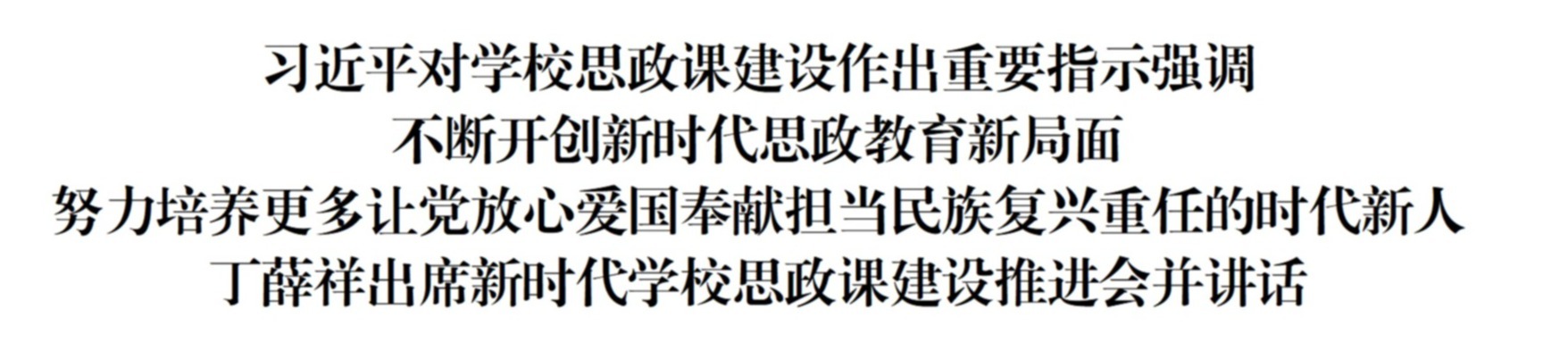 丁薛祥强调,要紧扣新时代新征程教育使命,坚持思政课建设与党的创新理论武装同步推进,不断开创新时代思政教育新局面。加快构建以习近平新时代中国特色社会主义思想为核心内容的课程教材体系,推动党的创新理论最新成果入脑入心。充分发挥新时代伟大成就的教育激励作用,丰富思政课教学内容,讲好新时代故事,引导学生感悟党的创新理论的实践伟力。以“大思政课”拓展全面育人新格局,把思政小课堂和社会大课堂结合起来,推动学生更好了解国情民情,坚定理想信念。遵循教育规律,深入推进大中小学思想政治教育一体化建设,循序渐进、螺旋上升设计课程目标,贴近学生思想、学习和生活实际,让学生爱听爱学、听懂学会。加强思政课教师队伍建设,健全突出教学优先的评价体系,完善教师地位和待遇保障机制。各地各部门要扛起政治责任,狠抓工作落实,推动形成思政课建设的强大合力。