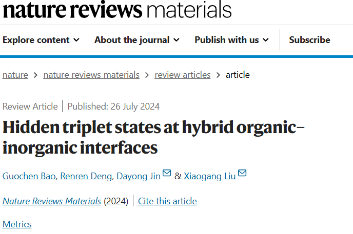 科研进展丨我校金大勇团队联合发表综述,解析三重态介导的有机-无机杂化材料