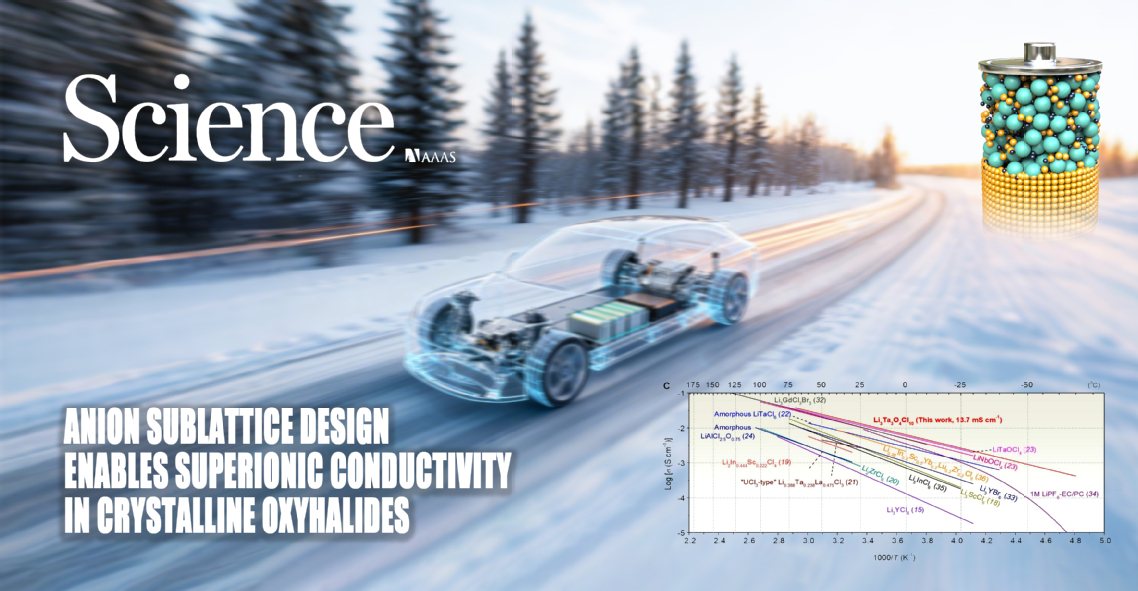 In a study titled "Anion sublattice design enables superionic conductivity in crystalline oxyhalides," Academician Xueliang Sun's team at EIT, together with Professor Yifei Mo's group at the University of Maryland, reported the development of a new superionic conductor, Li₃Ta₃O₄Cl₁₀, which achieves a record room-temperature ionic conductivity of 13.7 mS/cm among halide-based solid electrolytes, and enables highly stable all-solid-state battery operation even at -50°C.