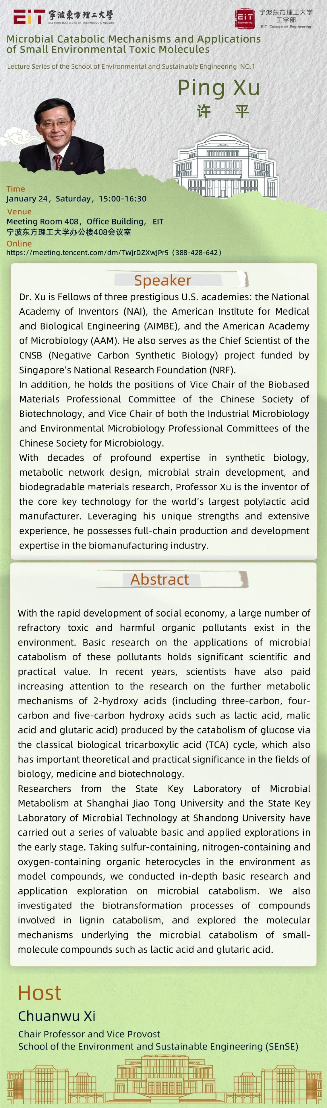 Lecture Series | Ping Xu: Microbial Catabolic Mechanisms and Applications of Small Environmental Toxic Molecules