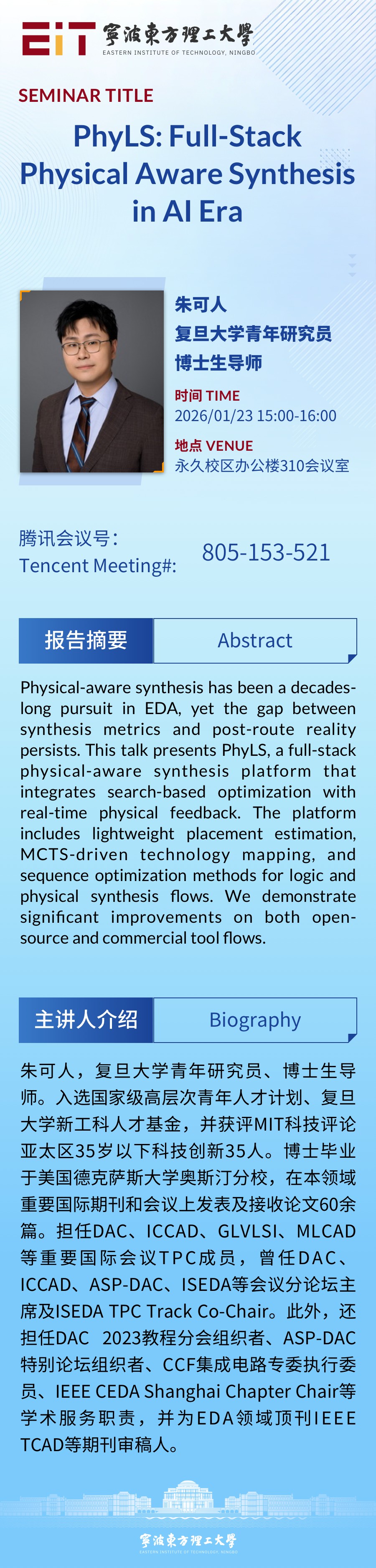 Seminar | Keren Zhu: PhyLs: Full-Stack Physical Aware Synthesis in AI Era