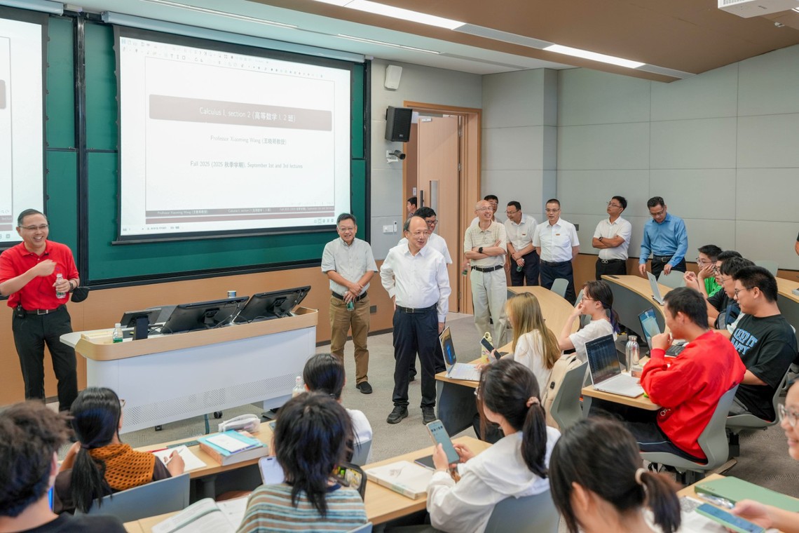Prior to the first Calculus I lecture, university leadership, including Shiyi Chen, along with Bo Jin and Dongxiao Zhang, visited classrooms to observe teaching at the start of the semester.