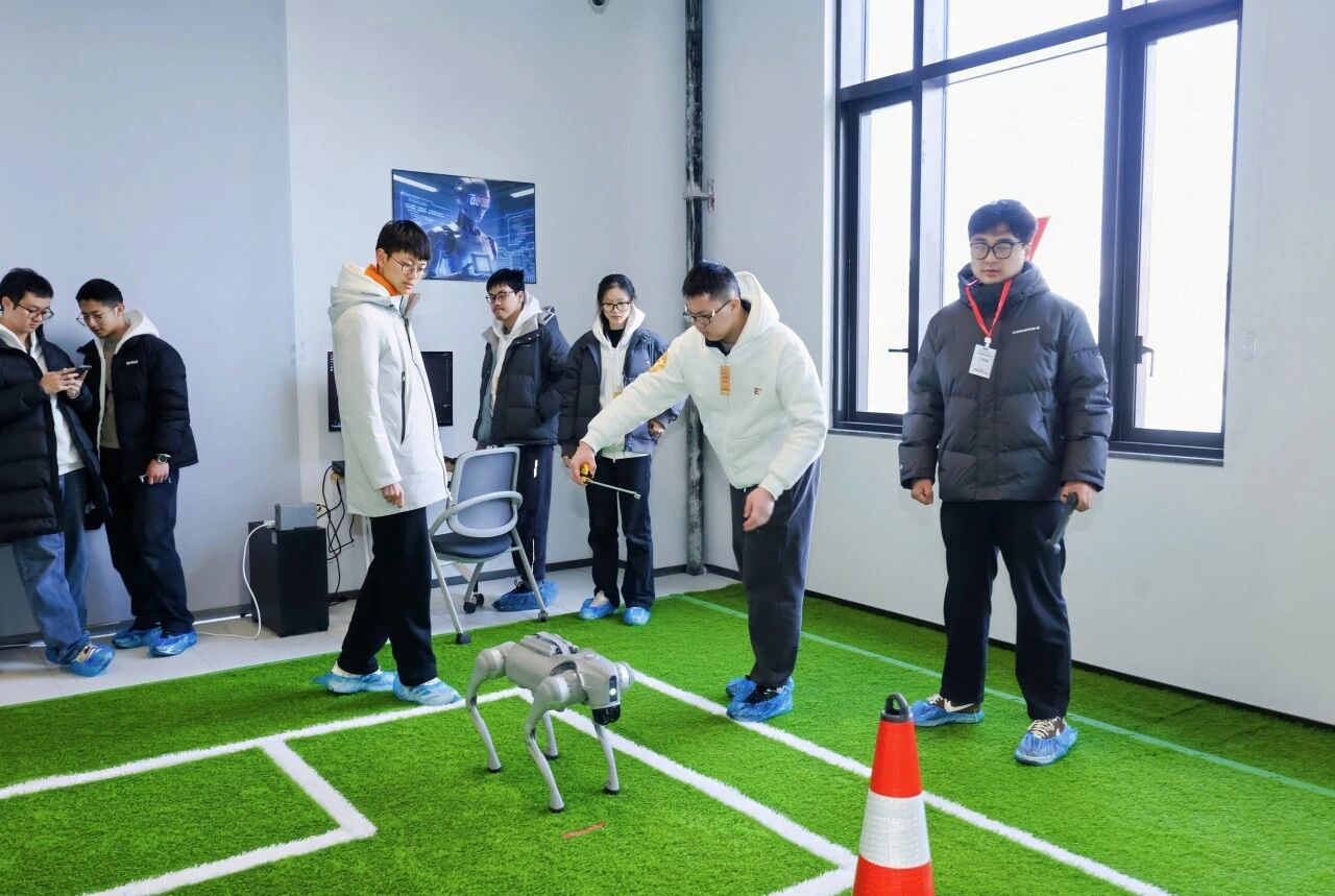 Assistant Professor Wei Zhang and his team led a hands-on session with robotic dogs. Ziwei Li, a student from Taizhou No.1 High School, and her team quickly adjusted parameters to optimize the robotic dog's navigation route, securing first place in the competition.